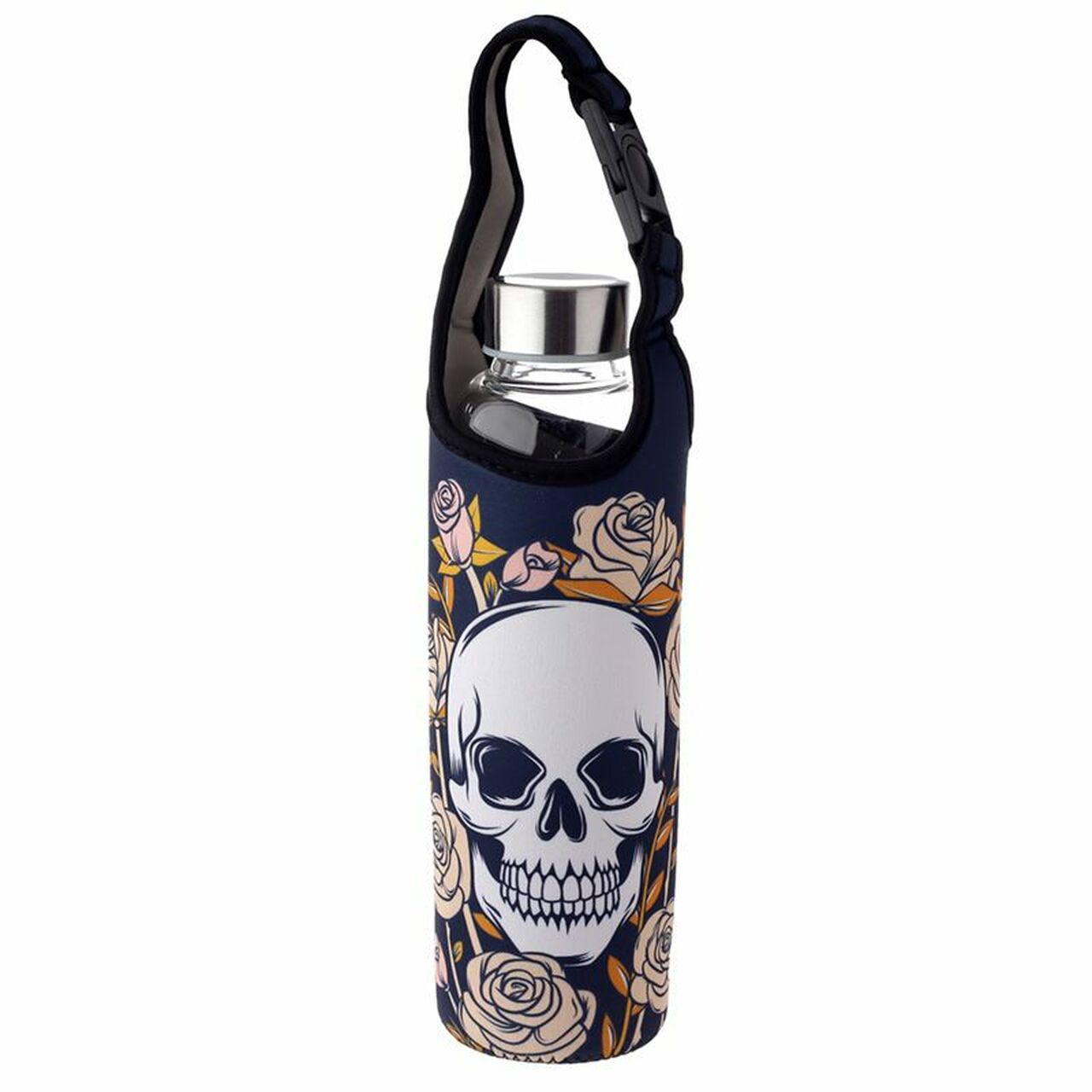Garrafa de Vidro com Pega e Manga Neoprene Skulls